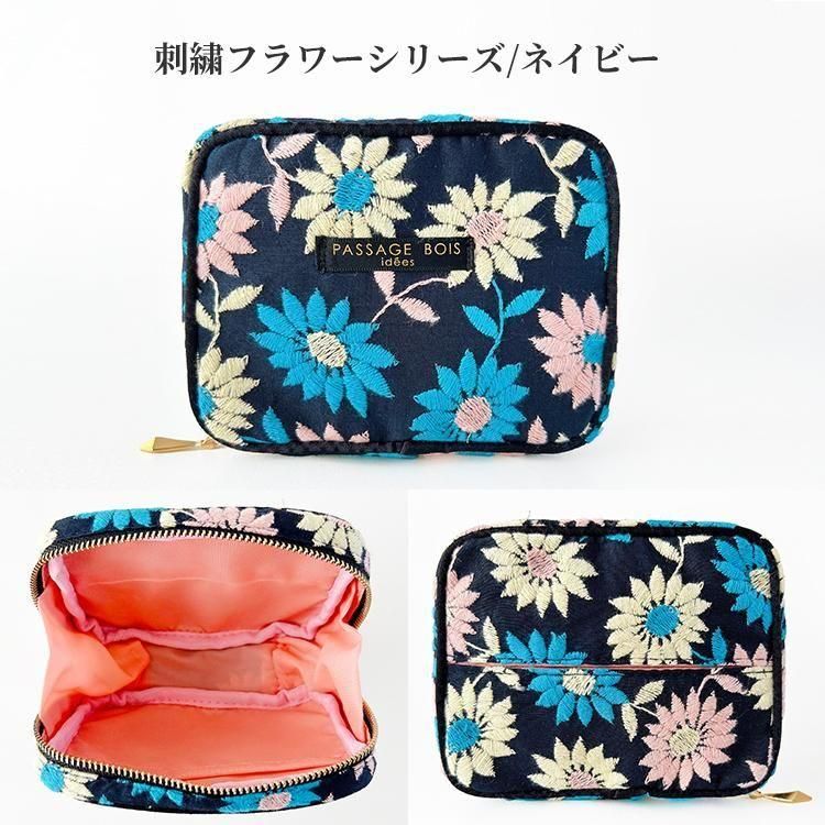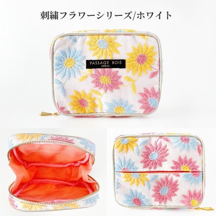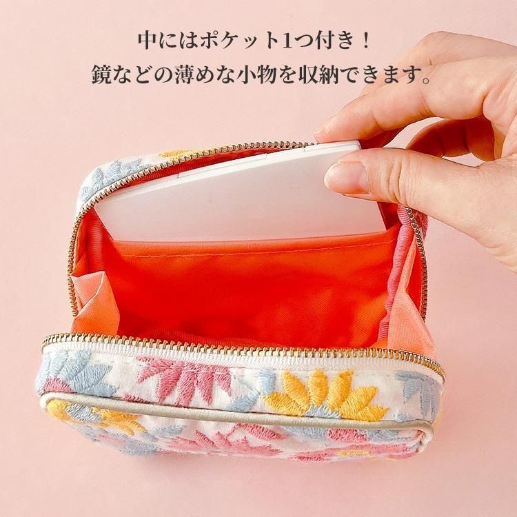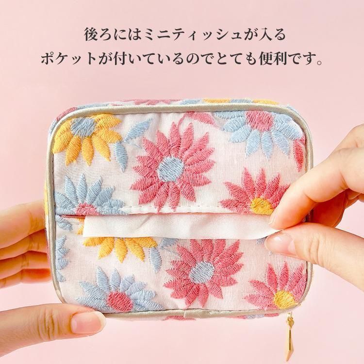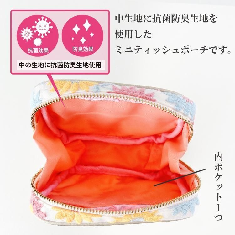 【中の生地に抗菌防臭生地使用】刺繍フラワーシリーズ ミニティッシュポーチ