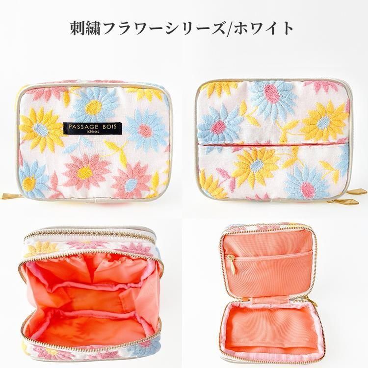 【中の生地に抗菌防臭生地使用】刺繍フラワーシリーズ Wミ二ティッシュポーチ
