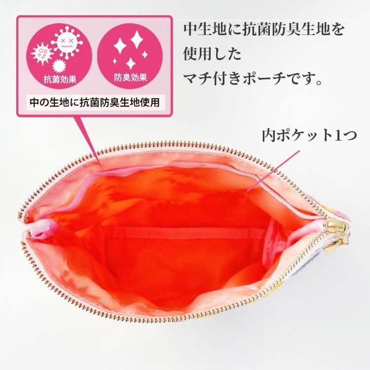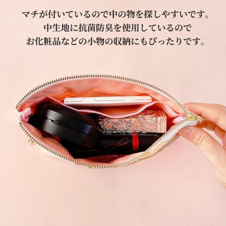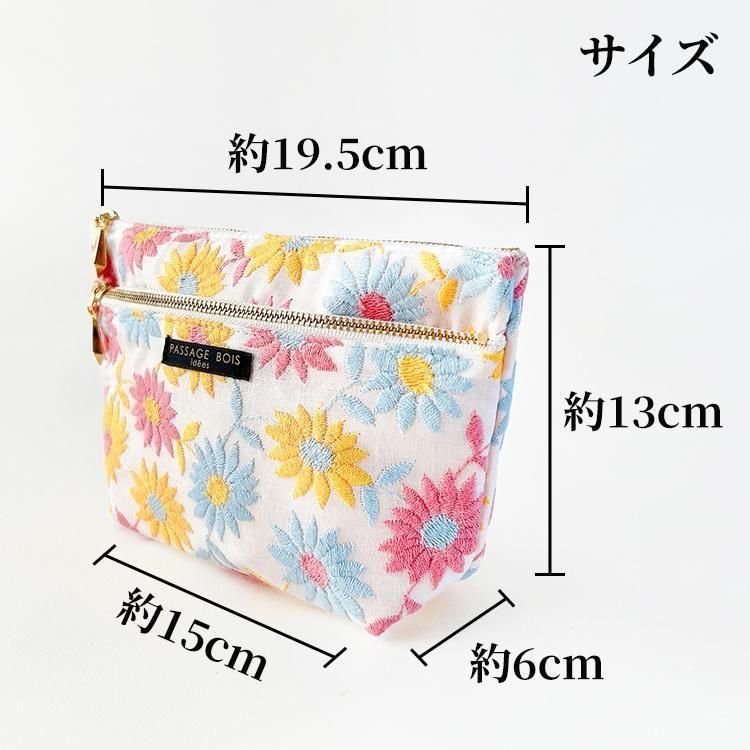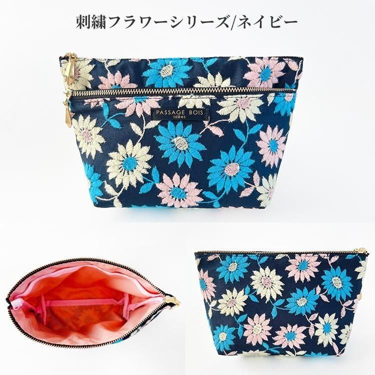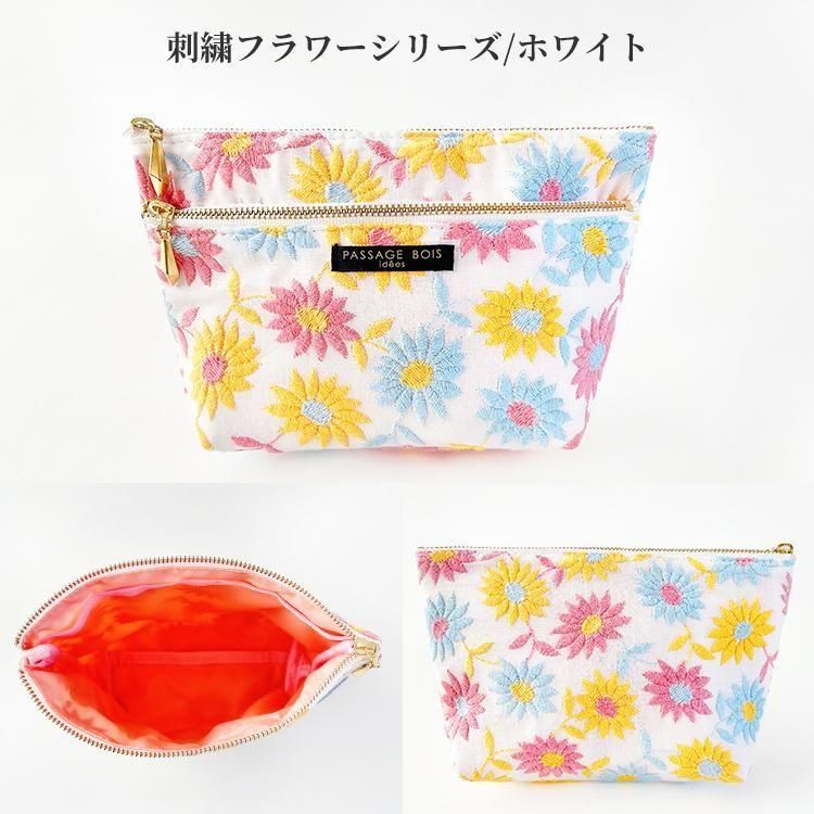 【中の生地に抗菌防臭生地使用】刺繍フラワーシリーズ マチ付きポーチ